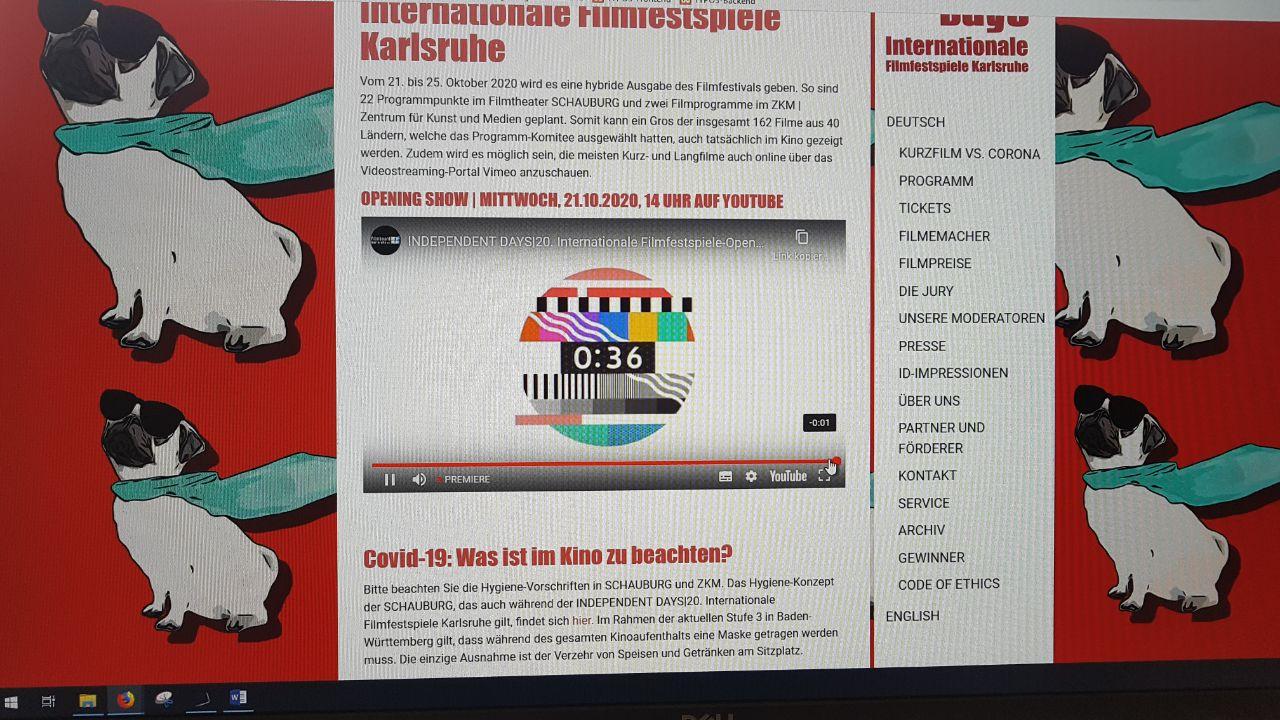 Die Festival-Außenreporterin Dagmar Ohnemus meldete sich erst von der Schauburg, kurz darauf war sie vor dem ZKM | Zentrum für Kunst und Medien zu sehen. Sie erklärte, dass 22 von 35 Programmblöcken im Kino zu sehen sind! Natürlich unter Einhaltung aller bestehenden Corona-Vorschriften.